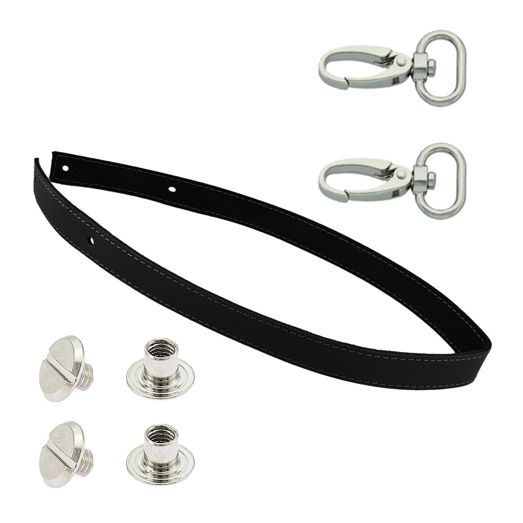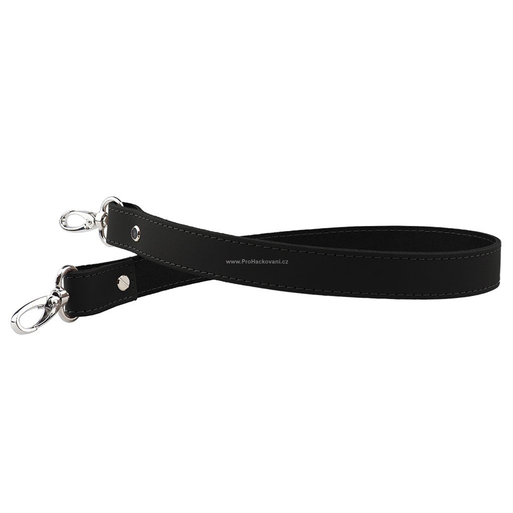 Sada kožený popruh prošívaný 62 cm š.2 cm černý s karabinou nikl