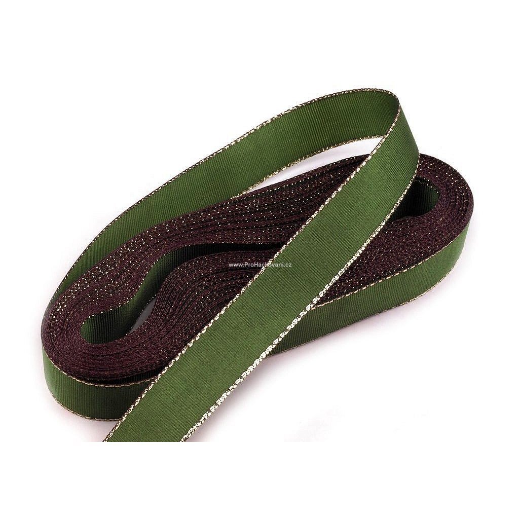 Stuha s lurexem 15 mm lesní zelená a zlatá