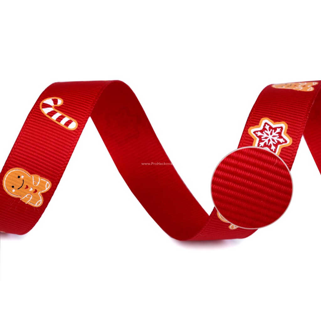 Vánoční rypsová stuha 16 mm červená s perníčkem 3 m