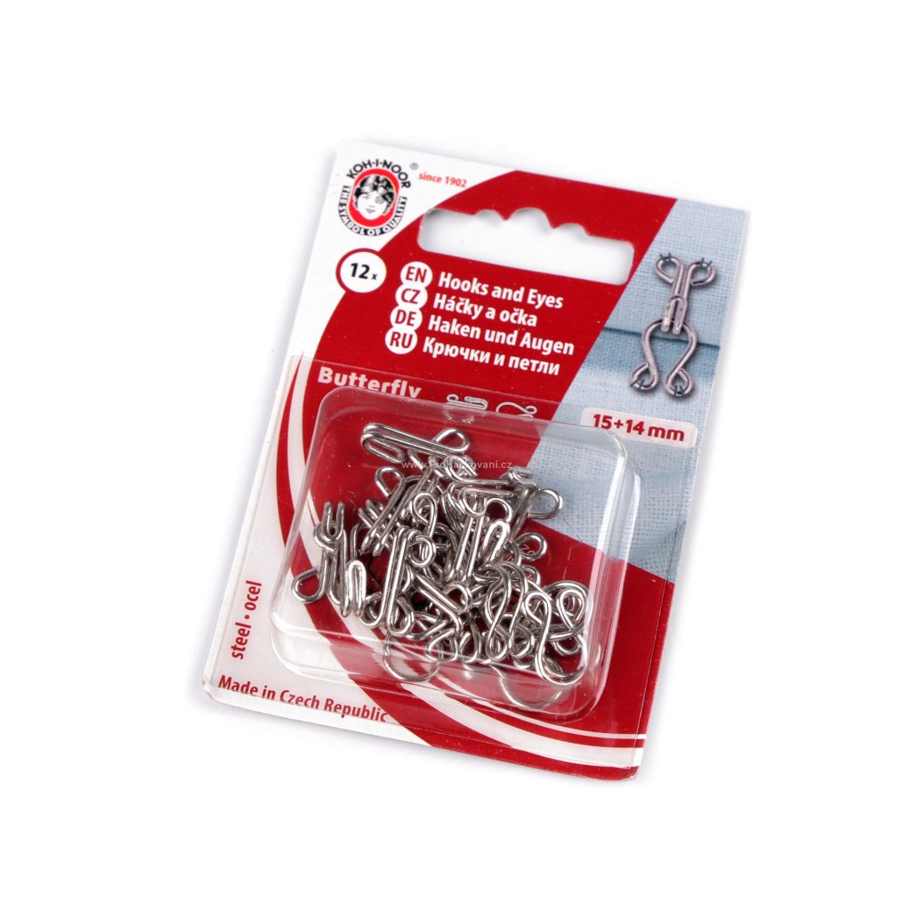 Háčky a očka velikost 1,3,4,6 (15+14 mm) nikl 12 ks.