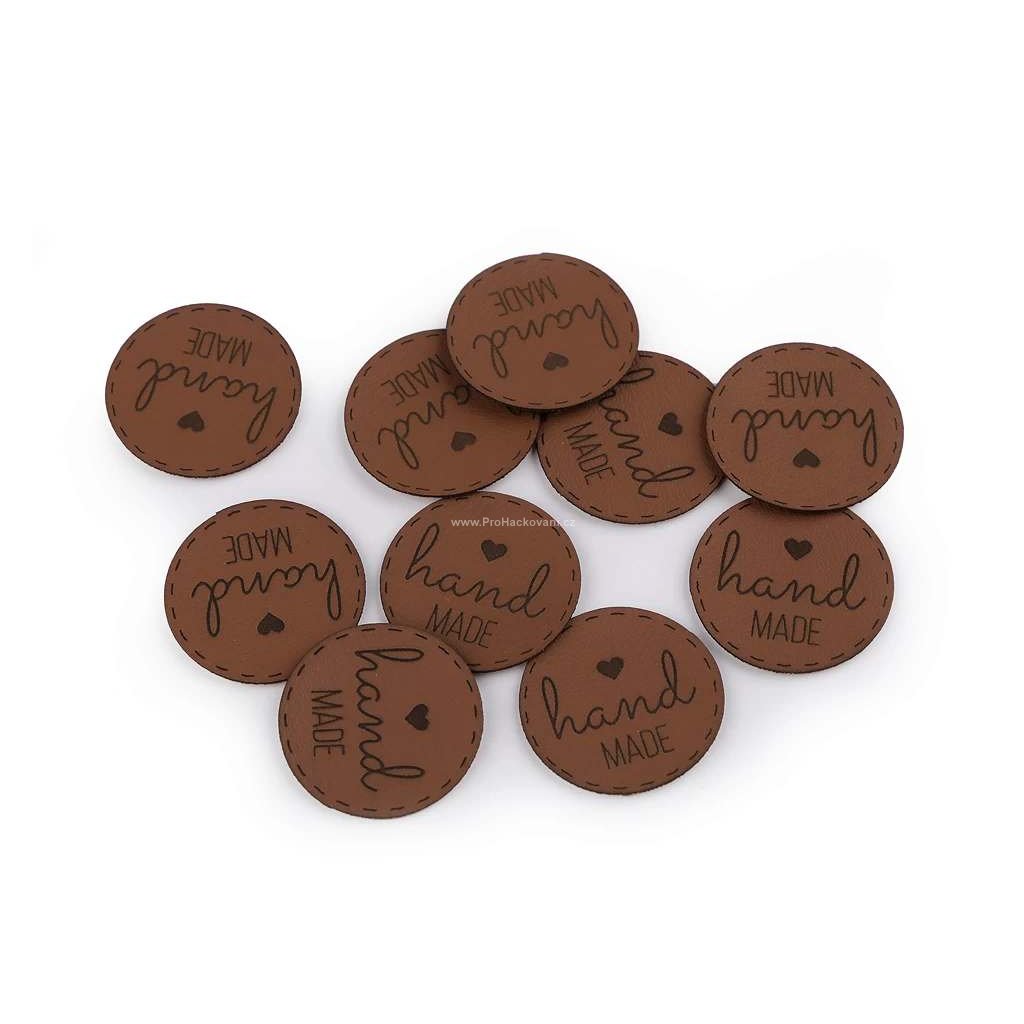 Papírová cedulka kulatá s nápisem Hand made, Ø 35 mm.