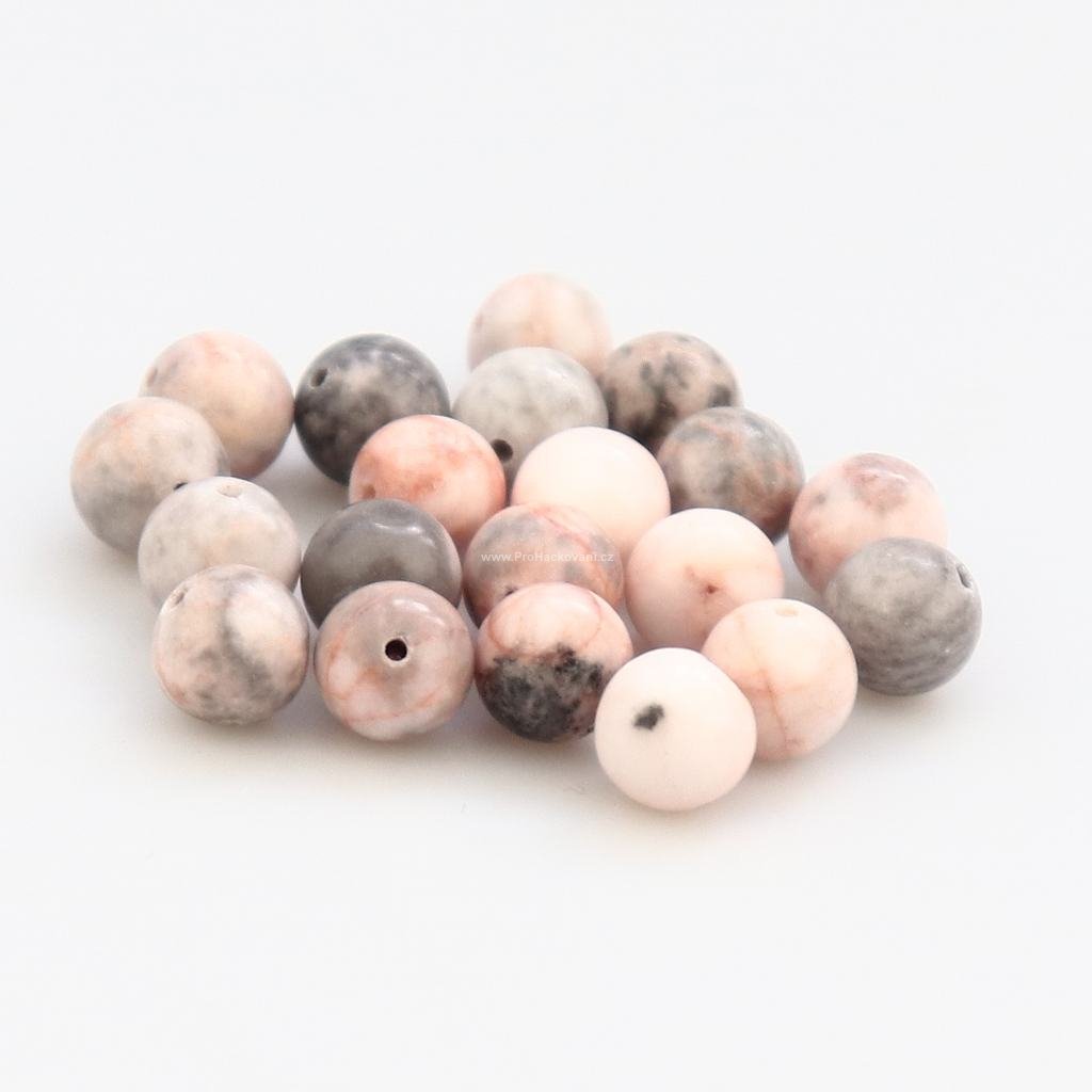Tromlované korálky z růžového minerálu jaspis zebra jsou přírodní bez jakéhokoliv dobarvování.