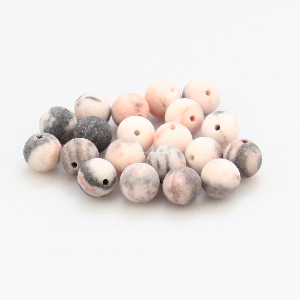 Tromlované zmatnělé korálky z růžového minerálu jaspis zebra jsou přírodní bez jakéhokoliv dobarvování.