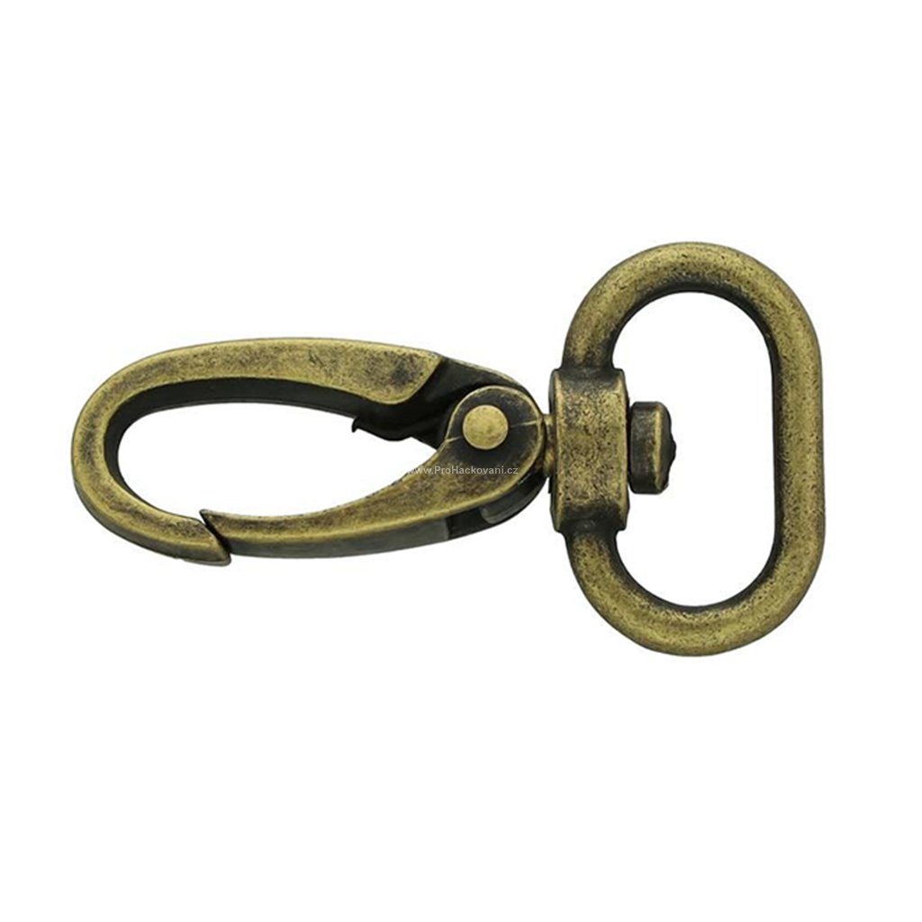 Galanterní karabina s otočným hranatým okem, které předchází zamotání popruhům. Nejčastěji karabinu využijete při výrobě kabelek, tašek, klíčenek nebo batohů.