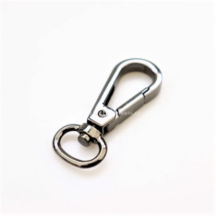 Galanterní karabina s otočným kulatým okem, které předchází zamotání provazu, řetízku nebo kulaté kůže. Nejčastěji karabinu využijete při výrobě kabelek nebo tzv. psaníček, tašek, klíčenek nebo menších batohů.