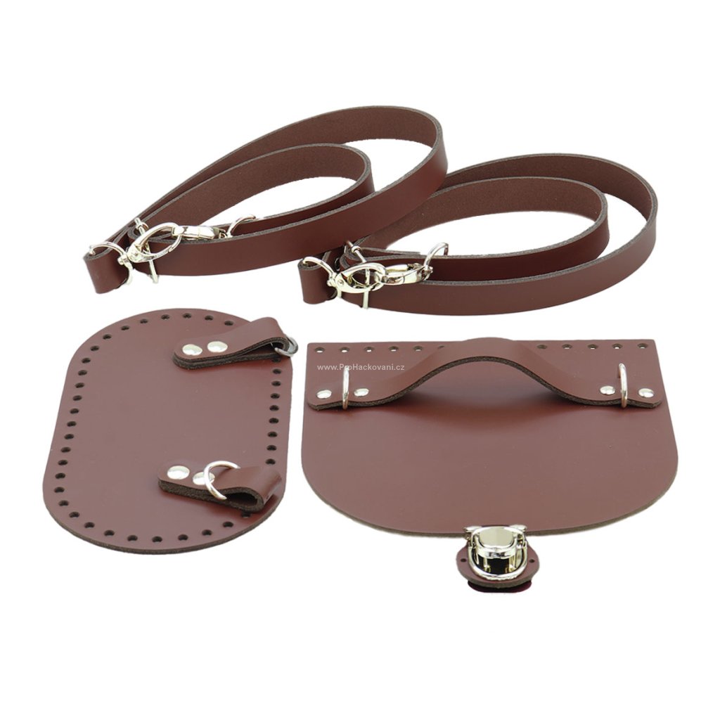 Kožená sada na batoh s klopou, dnem a popruhy - hnědá