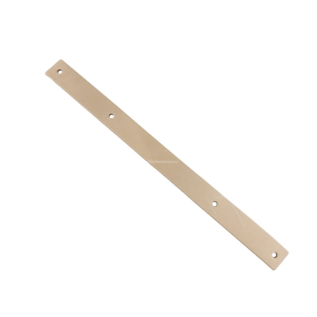 Kožený popruh o délce 33 cm je perfektní volbou pro výrobu uch na košíky, podnosy nebo tácy. Po připevnění šroubovacích nýtů dosahuje délky cca 22 cm.