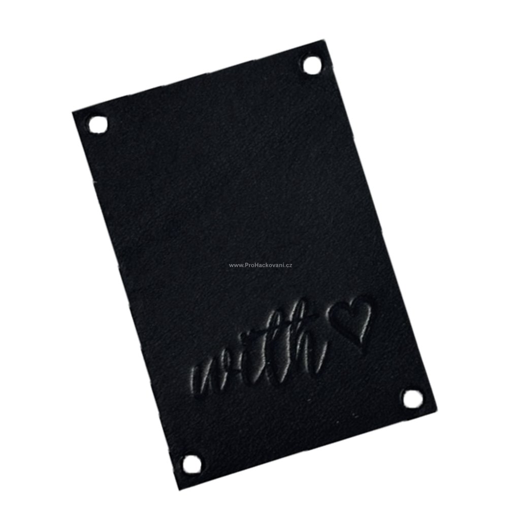 Kožený štítek přes okraj 60x40 mm with ♥ černý