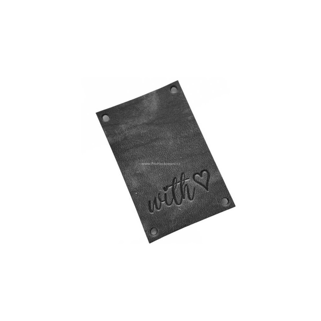 Kožený štítek přes okraj 60x40 mm with ♥, šedý ombre.