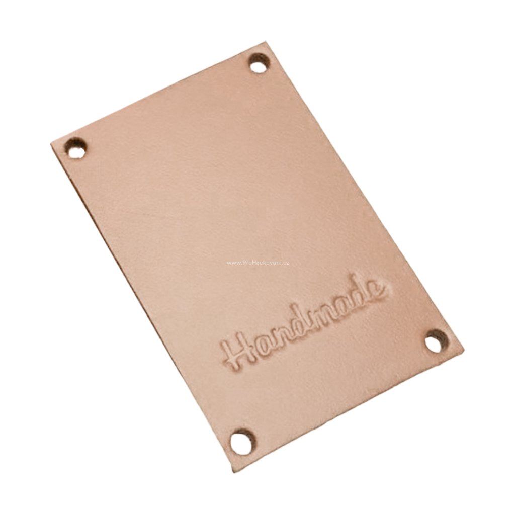 Kožený štítek přes okraj 60x40x3 mm Handmade, latté