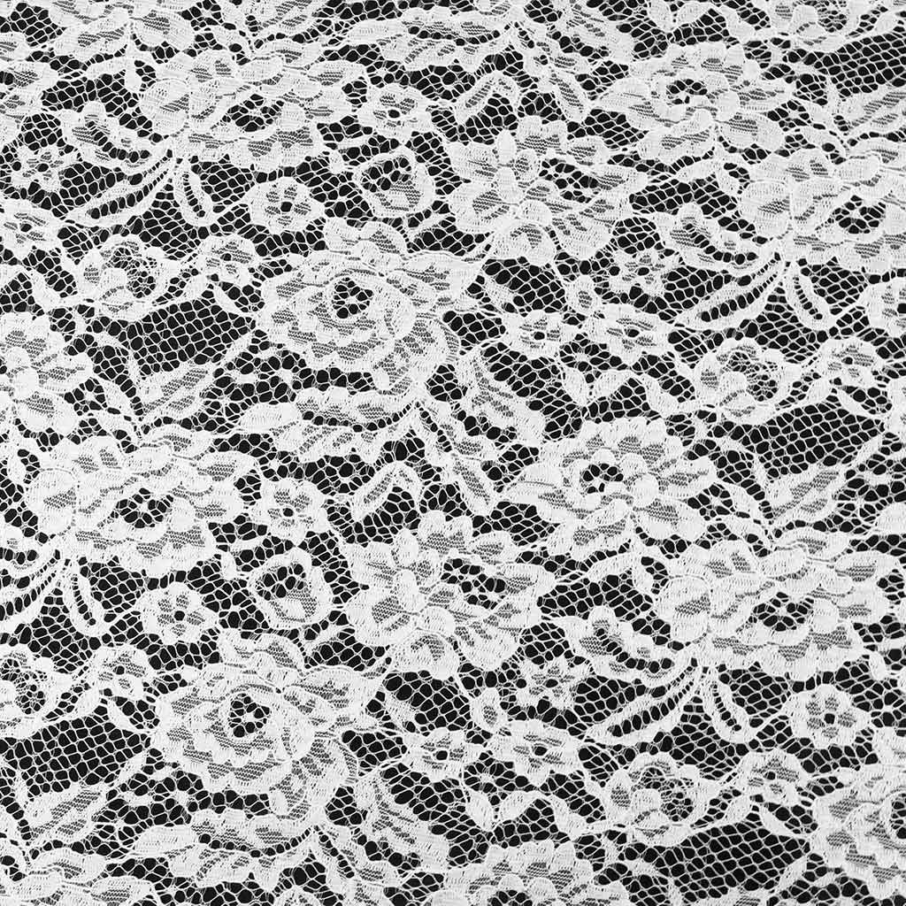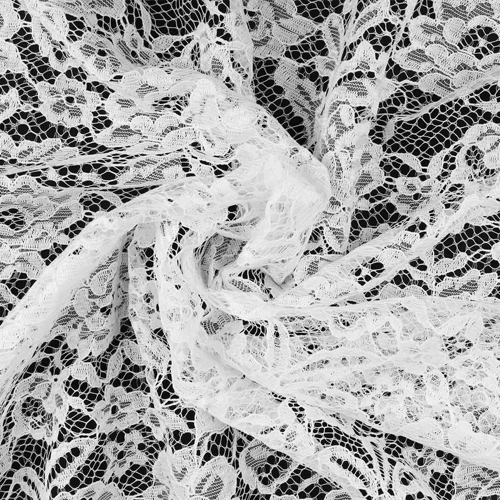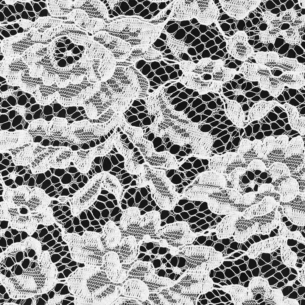 Dodejte svým projektům nádech nevinnosti a luxusu s touto nádhernou bílou krajkou. Její vzor tvoří hustá síť propracovaných květů různých velikostí, které jsou propojeny jemným tylovým základem. Tato krajka je ztělesněním klasické elegance a je ideální pro výjimečné příležitosti.