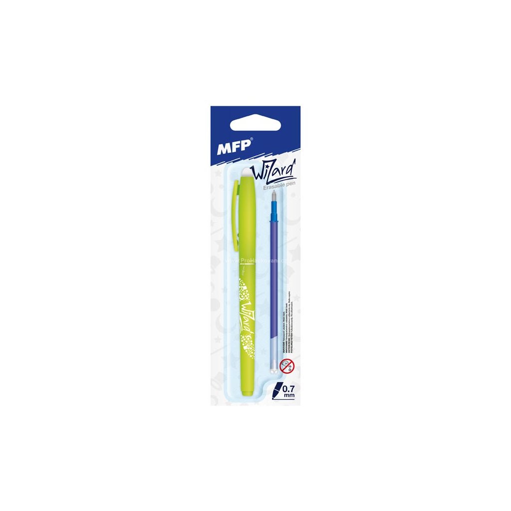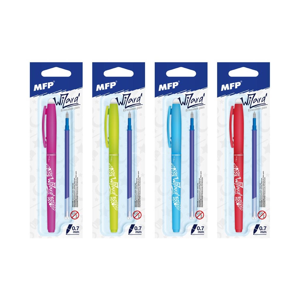 Magické, kuličkové pero Wizard obsahuje speciální inkoust tzv. vymaž a přepiš, nebo vymaž a nech znovu objevit. Pokud uděláte chybu, stačí jen otočit pero a plastovou špičkou text vymažete. Špička zahřeje inkoust, ten zmizí a lze je znovu přepsat. Můžete si psát i tajné vzkazy, po vygumování stačí jen papír ochladit pod bod mrazu a text se znovu objeví. Tato vymazatelná propiska je balena v blistru i s náhradní náplní.