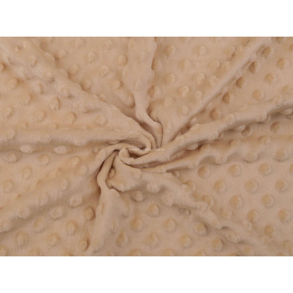 Minky jsou velmi příjemné, měkké a hebké na dotek. Na lícové straně jsou vytlačené 3D puntíky. Látka lehce pruží.