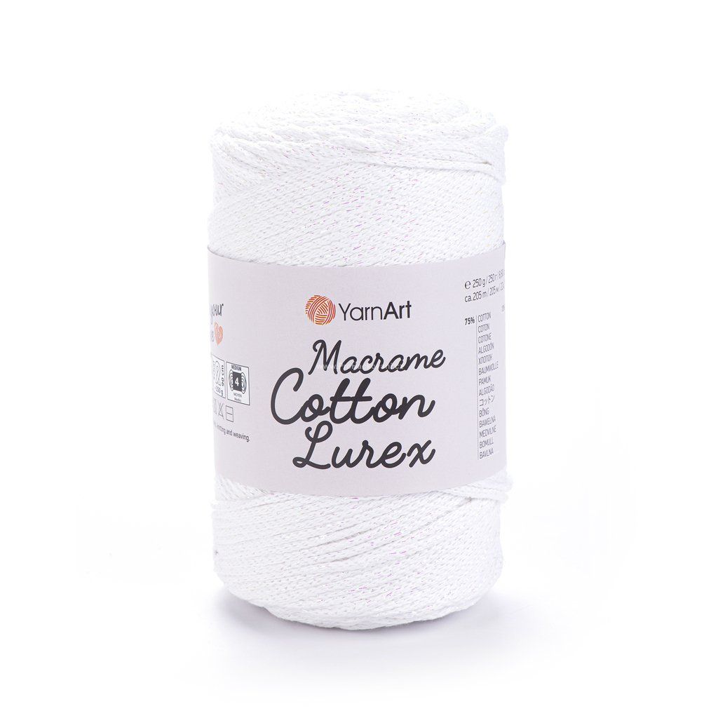 Macrame Cotton Lurex je splétaná šňůrková (provázková) příze se třpytivou nitkou.