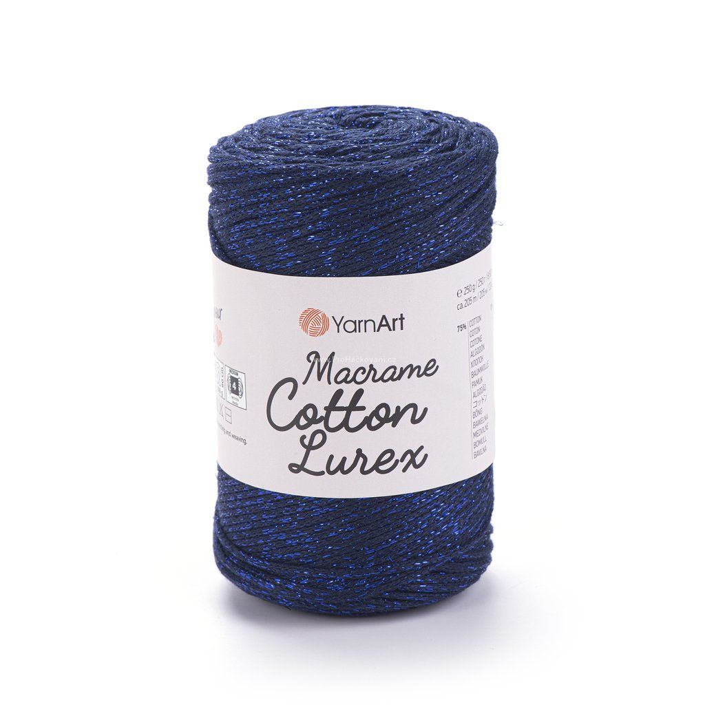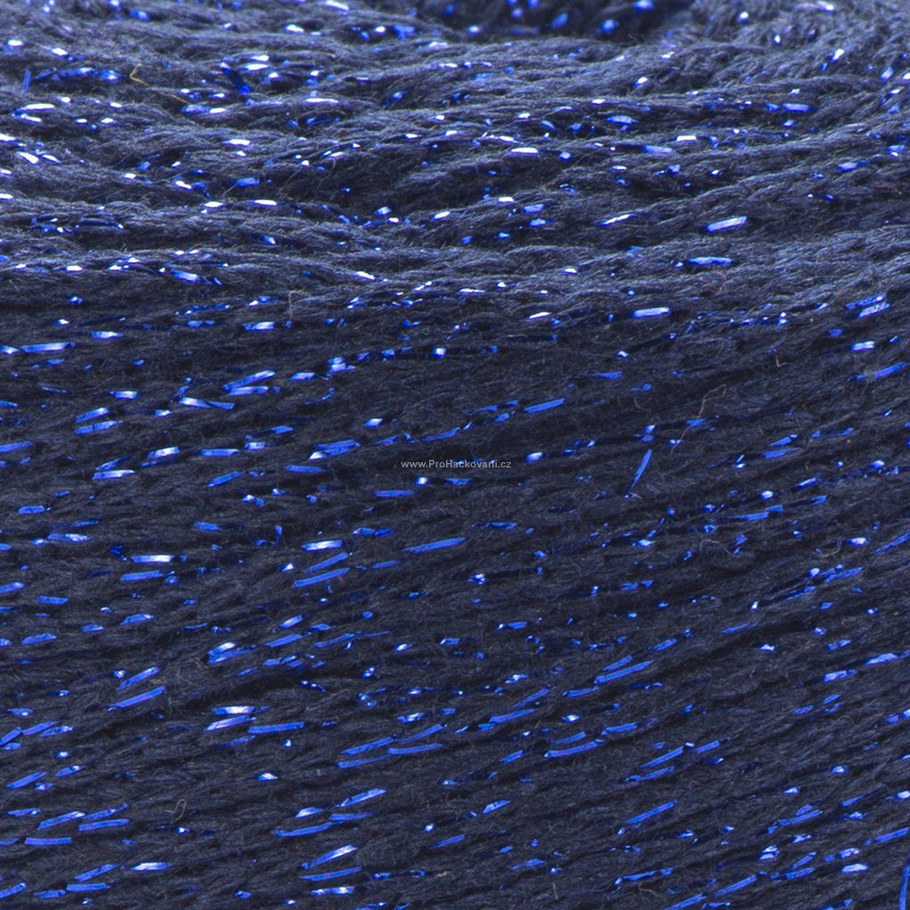 Macrame Cotton Lurex 740 tmavě modrá s modrou nitkou.