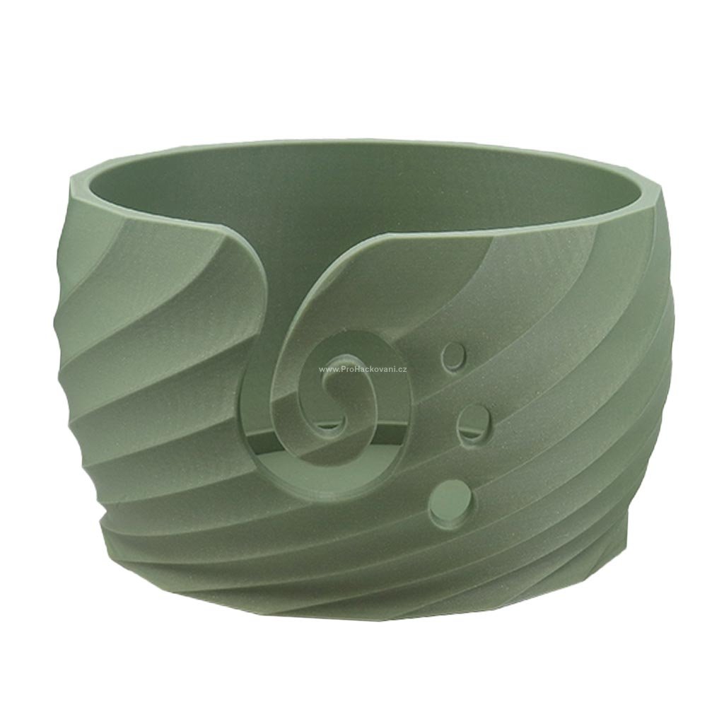 Misky na přízi jsou pečlivě vyráběny na 3D tiskárnách z ekologicky přijatelného materiálu Ekoplastu se základem v kukuřičném škrobu.