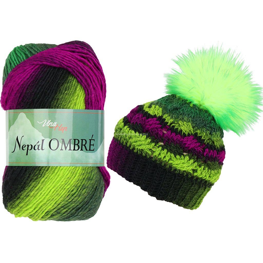 Příze Nepál Ombré 7422 odstíny zelené a výrazná fialová