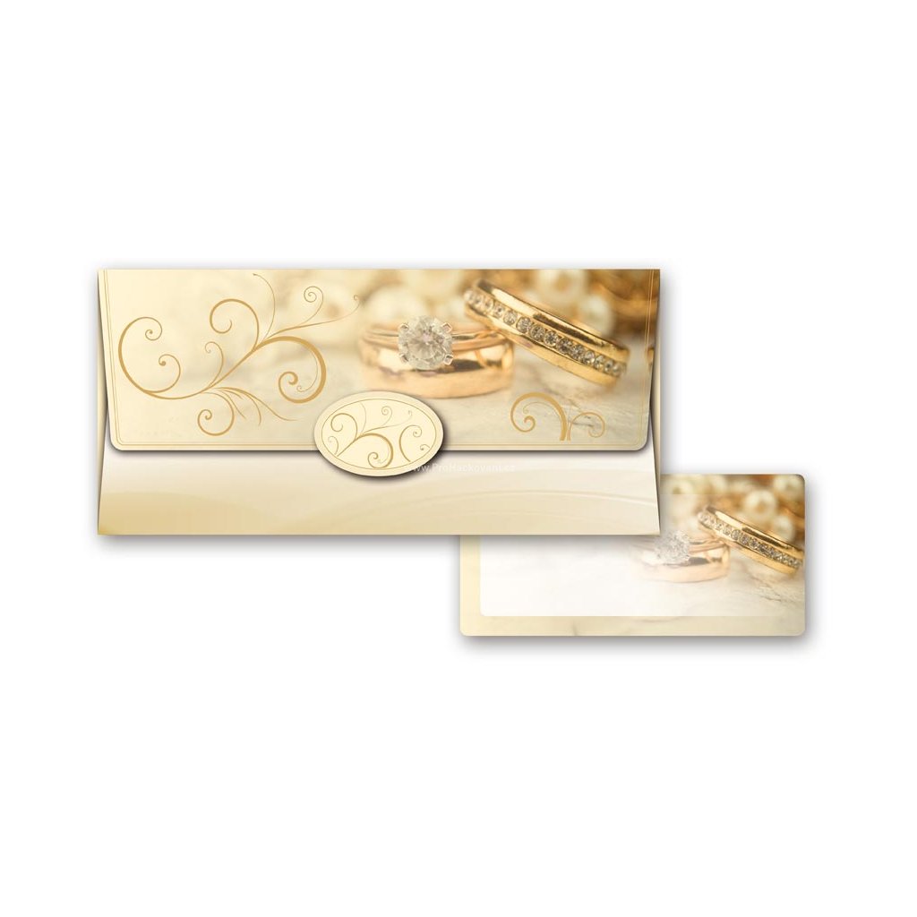 Dárková obálka na peníze pro novomanžele. Udělejte novomanželům radost a věnujte jim obálku s penězi nebo dárkovým poukazem. Uvnitř je kartička bez textu, na kterou můžete napsat věnování.