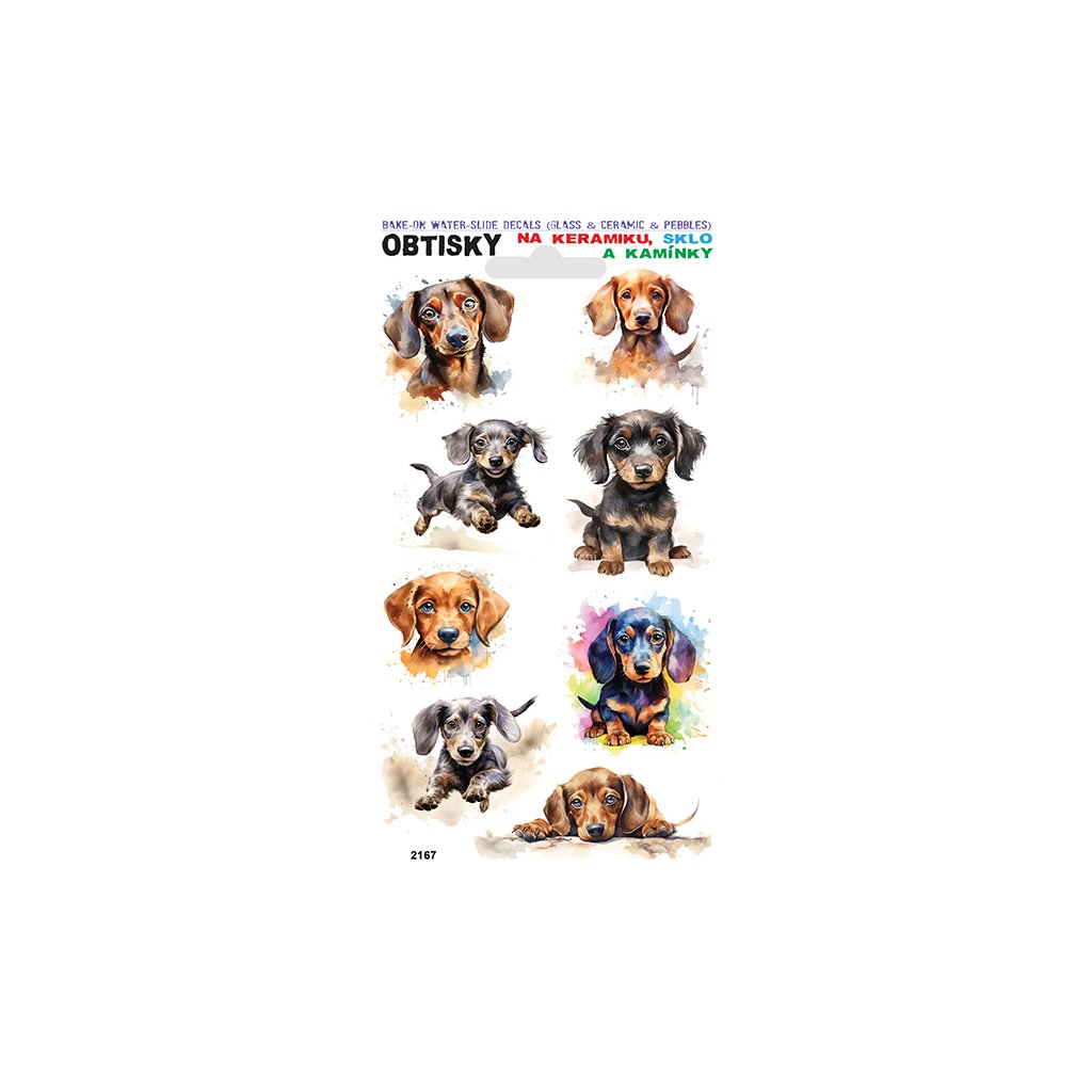 Dekorační obtisky s motivem jezevčíka jsou ideální pro kreativní tvoření a zdobení různých povrchů. Snadno s nimi ozdobíte například skleněné předměty, keramiku, papír nebo populární „putovní kamínky“. Stačí obrázek přenést na zvolený povrch a během chvíle vytvoříte originální dekoraci.