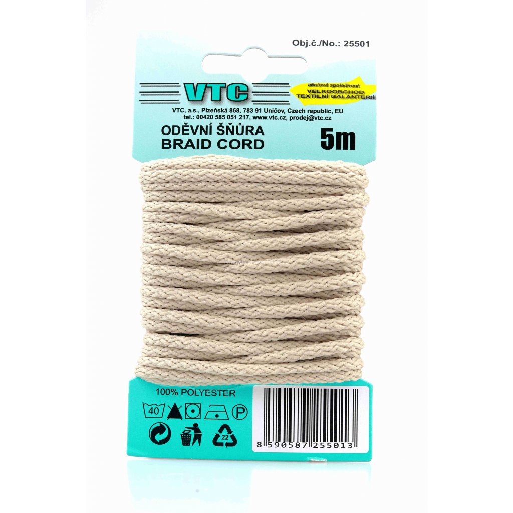 Oděvní šňůra 5 m na kartě - 40 béžová