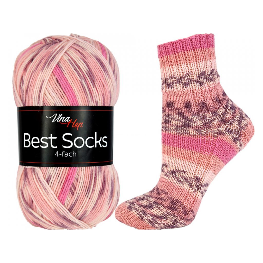 příze Best Socks 7303 smetanová, matná lososová, růžovofialová.