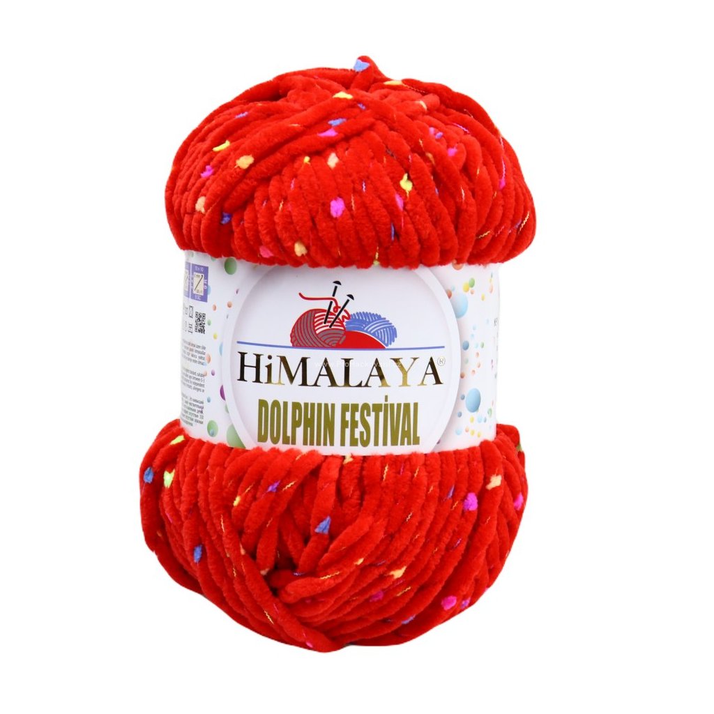 Himalaya Dolphin Festival je žinylková příze s barevným vláknem a nopky. Vlákno je obmotáno kolem příze.
