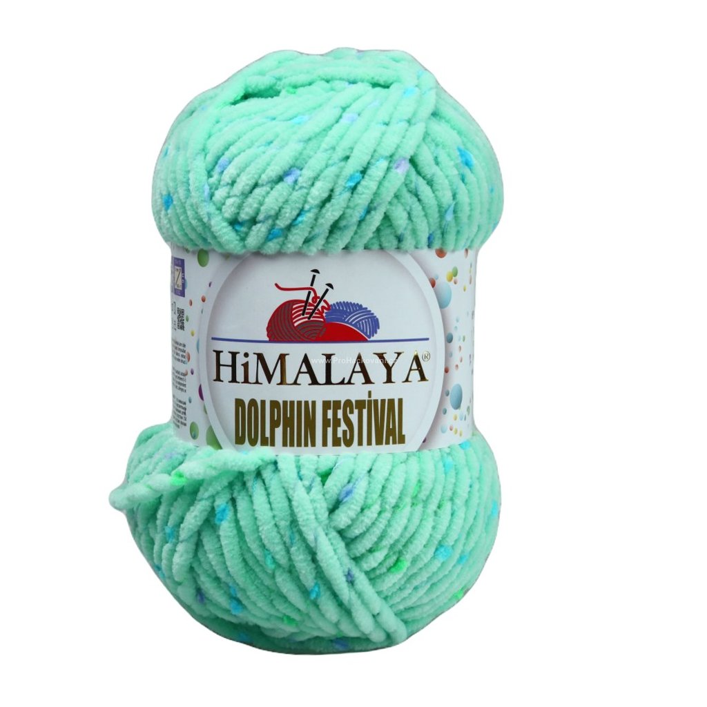 Himalaya Dolphin Festival je žinylková příze s barevným vláknem a nopky. Vlákno je obmotáno kolem příze.
