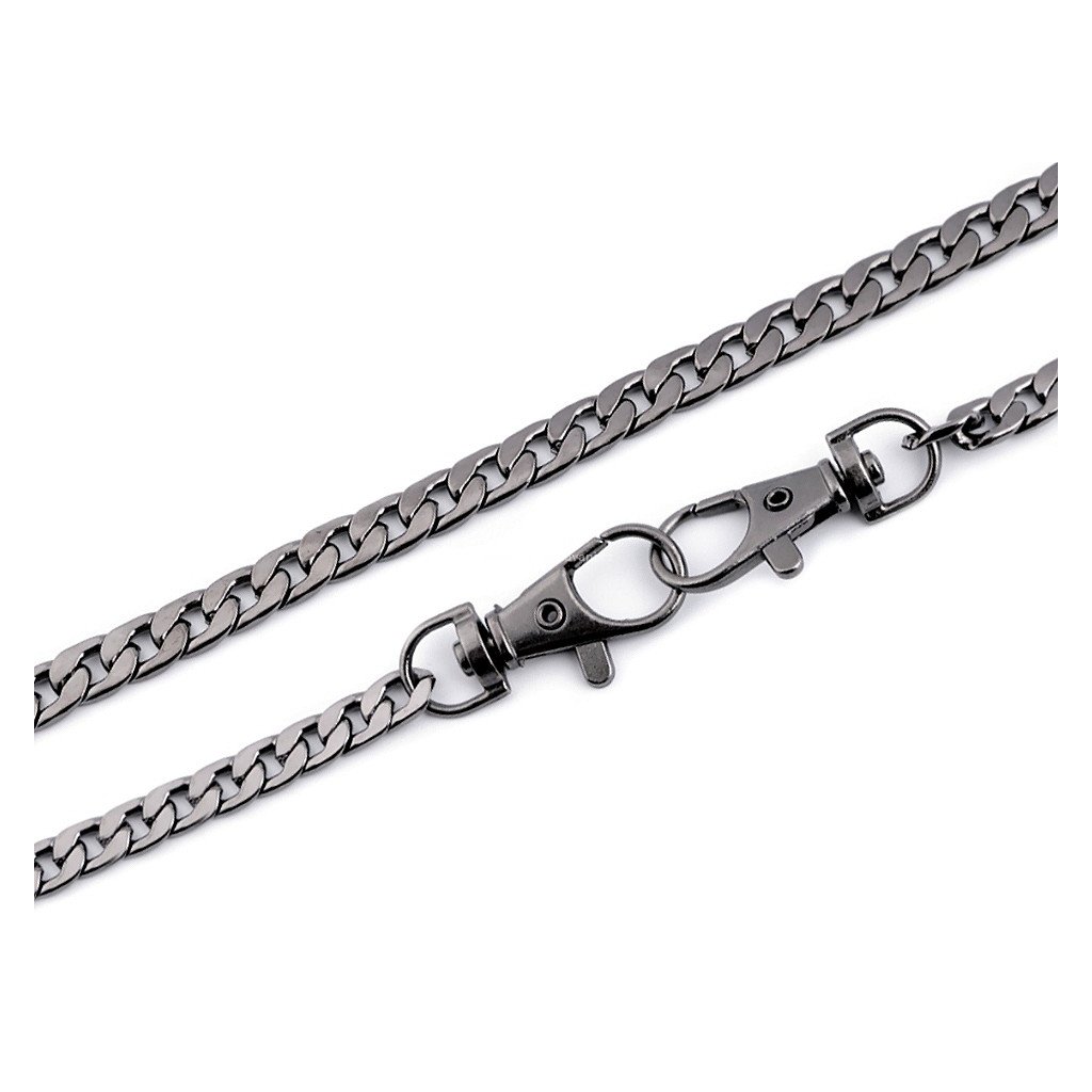 Řetízek na kabelky plochý s karabinou 120 cm, černý nikl