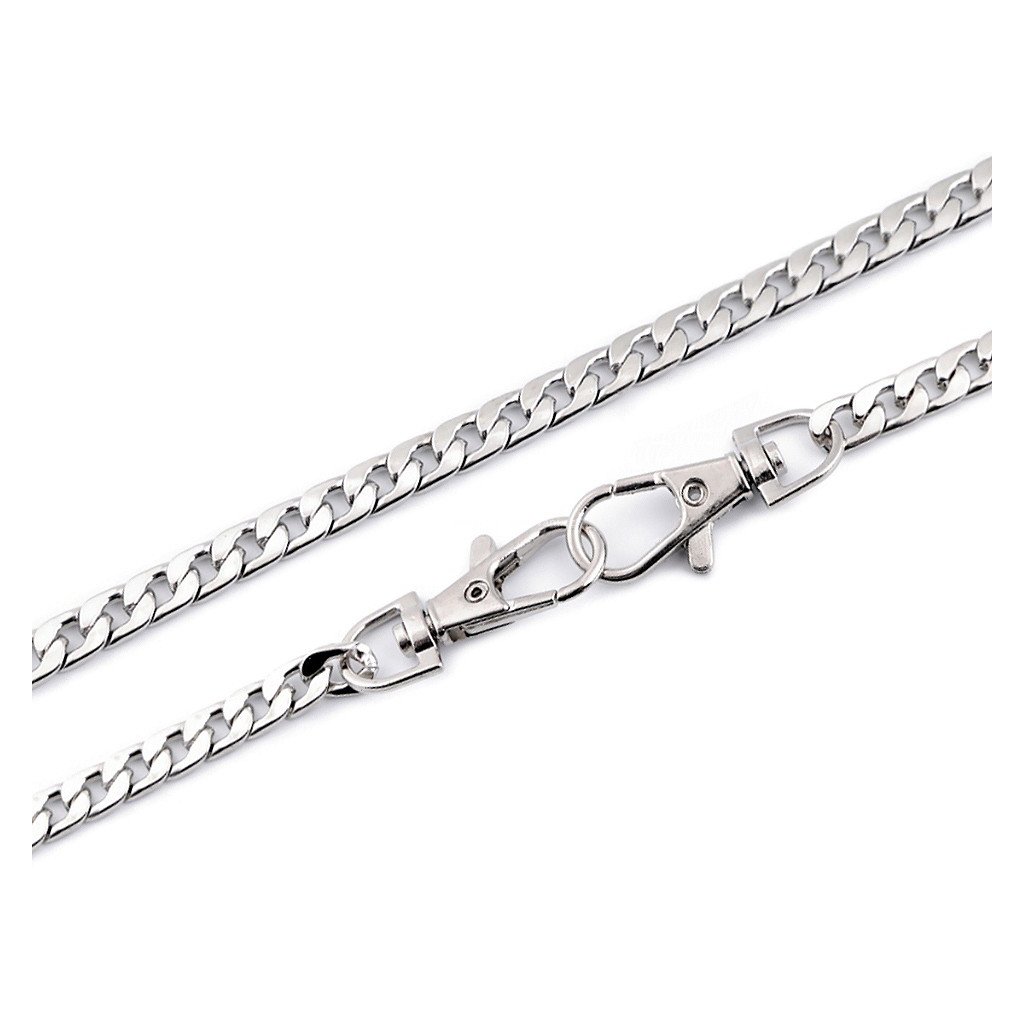 Řetízek na kabelky plochý s karabinou 120 cm, nikl.