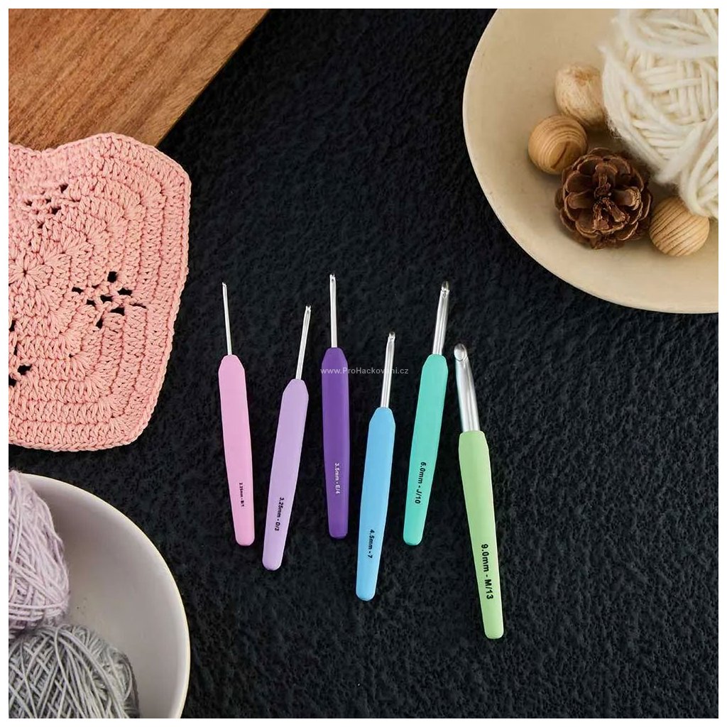 Háčky mají hladký povrch, díky kterému příze krásně klouže. Ergonomické rukojeti z měkčího plastu pohodlně padnou do ruky a umožňují háčkovat dlouhé hodiny bez únavy.