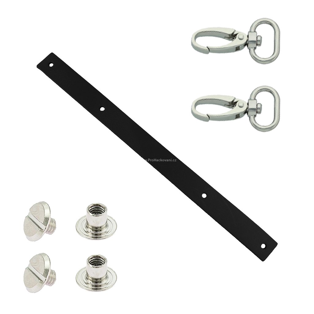 Sada kožený popruh 22 cm š. 2,5 cm černý s karabinou nikl