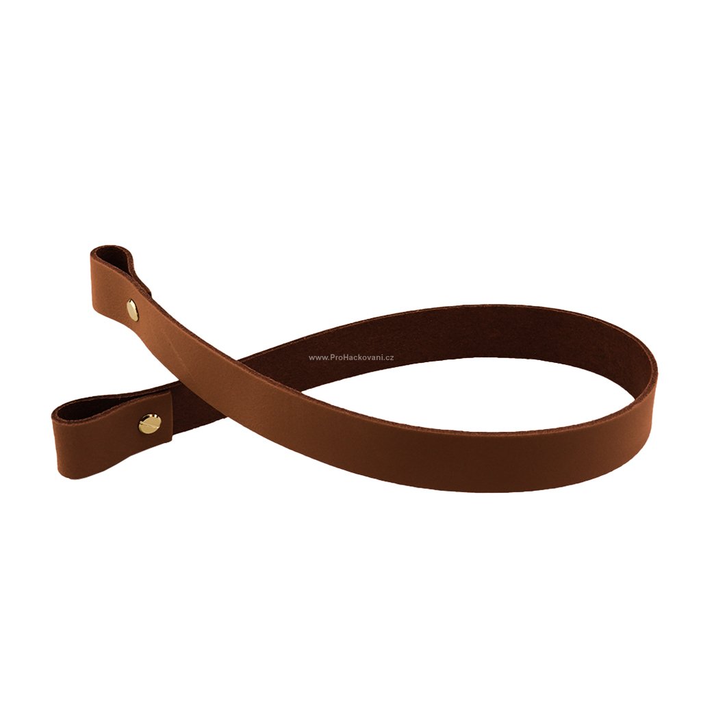 Sada kožený popruh 58 cm š. 2,5 cm hnědý s nýtkem zlatý