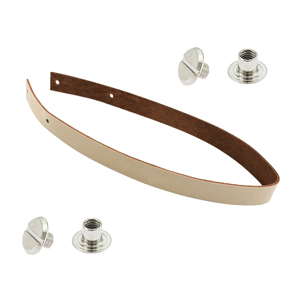 Sada kožený popruh 62 cm š. 2 cm krémový s nýtkem nikl
