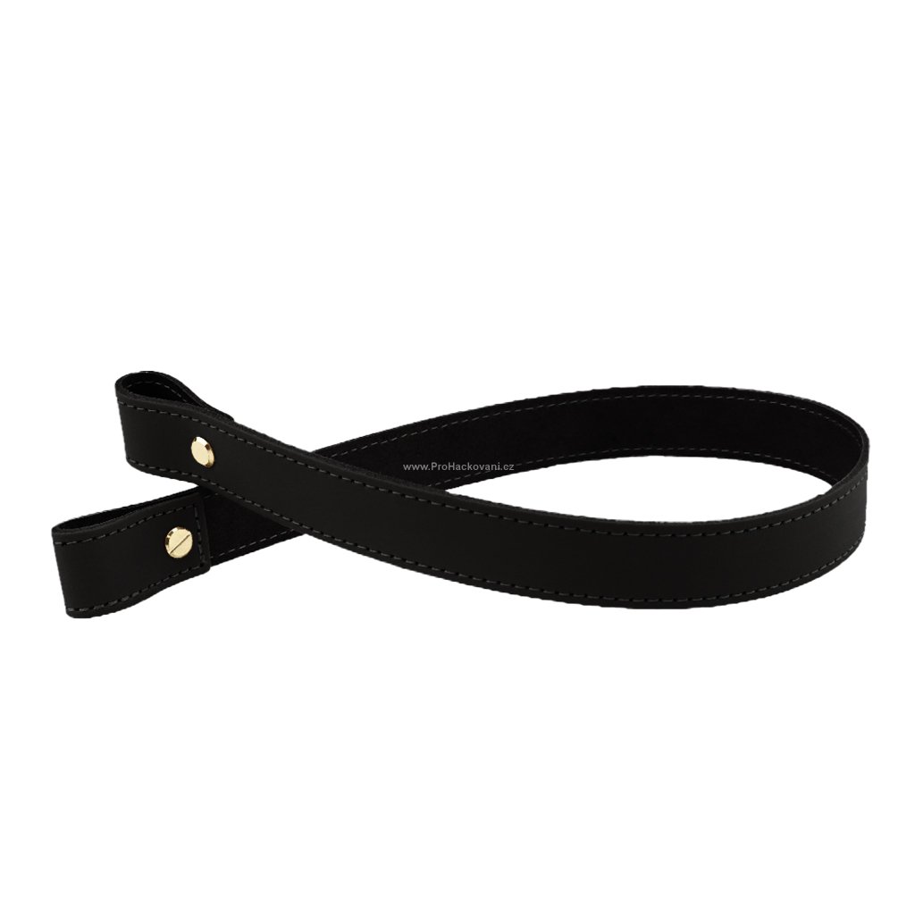 Sada kožený popruh prošívaný 58 cm š. 2,5 cm černý s nýtkem zlatý