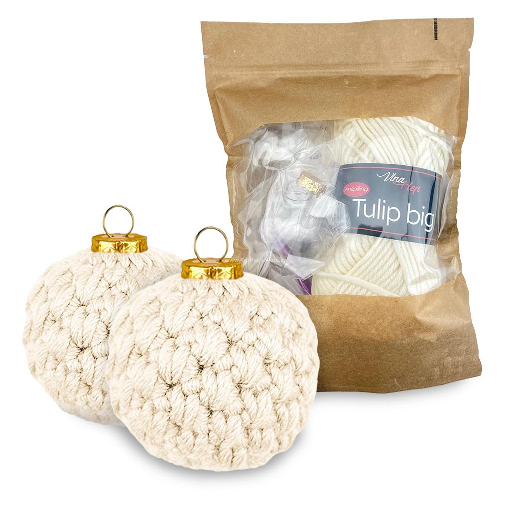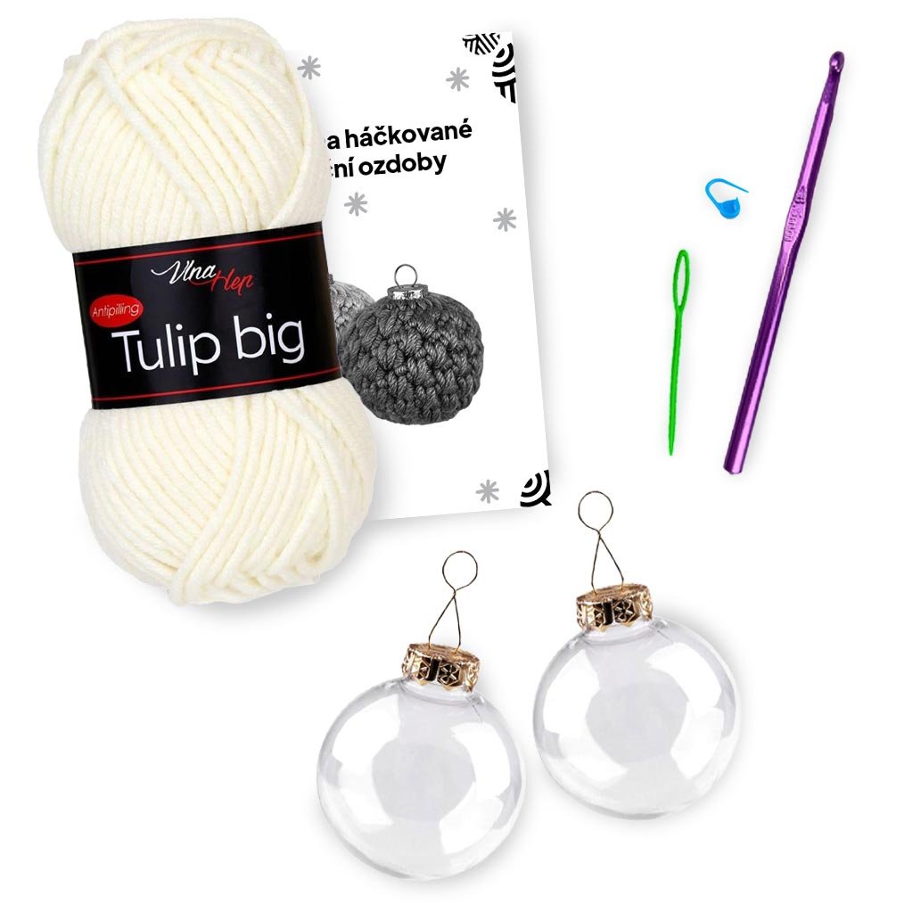 Tato kompletní sada na háčkování vánočních ozdob obsahuje vše, co potřebujete pro okamžité tvoření: silnou přízi Tulip Big, háček 6,5 mm a pomůcky (jehla, označovač). Srdcem sady jsou dvě baňky (6 cm) a především podrobný český tištěný návod krok za krokem, který je ideální i pro začátečníky. Díky silné přízi a háčku je práce rychlá a výsledkem jsou dvě krásné, ručně vyrobené ozdoby, ideální jako osobní dekorace nebo originální dárek.