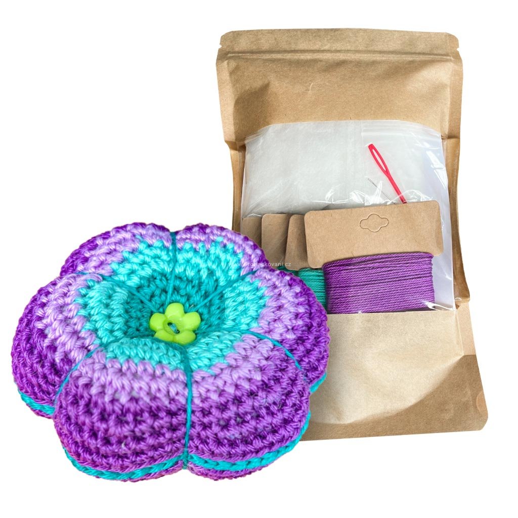 Sada na výrobu háčkovaného jehelníčku obsahuje vše, co budete potřebovat k jeho výrobě.