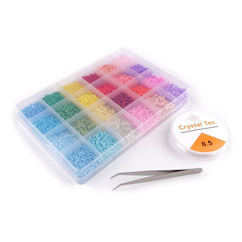 Kreativní sada skleněného rokajlu v boxu – 24 barev