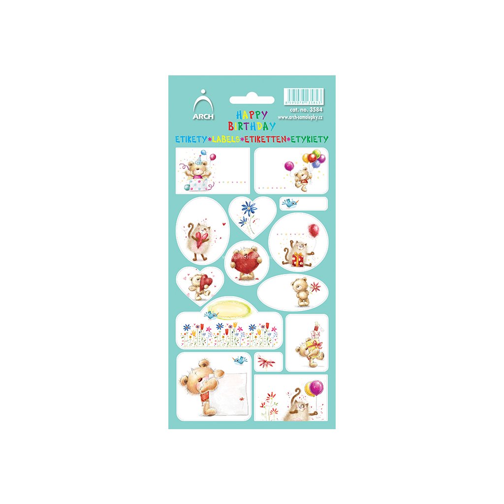 Roztomilé samolepicí etikety s motivem medvídků, balónků, srdíček a narozeninových dárků jsou ideální pro dětské oslavy a narozeninové párty. Jemné pastelové barvy v kombinaci s veselými ilustracemi vytvoří hravou a milou atmosféru.
