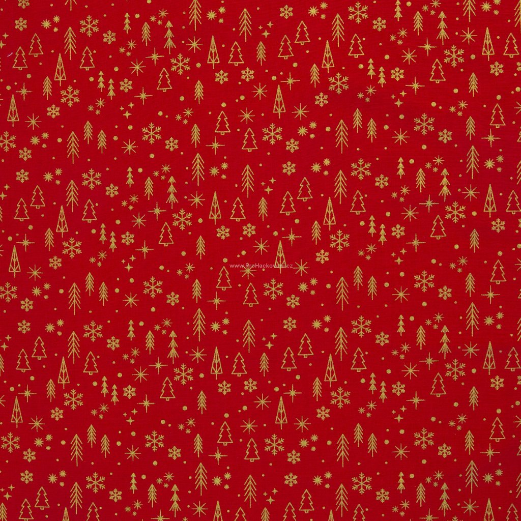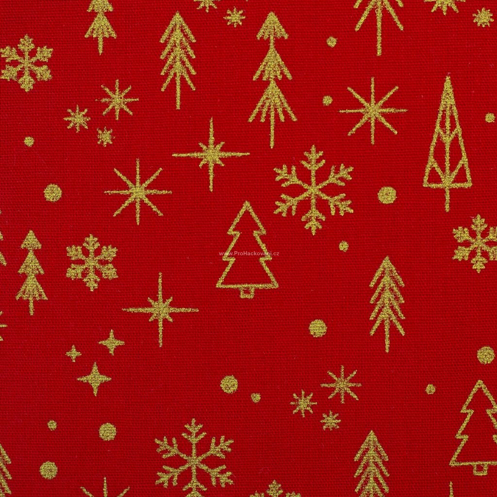 Bavlněná látka vánoční Neuss stromky červená