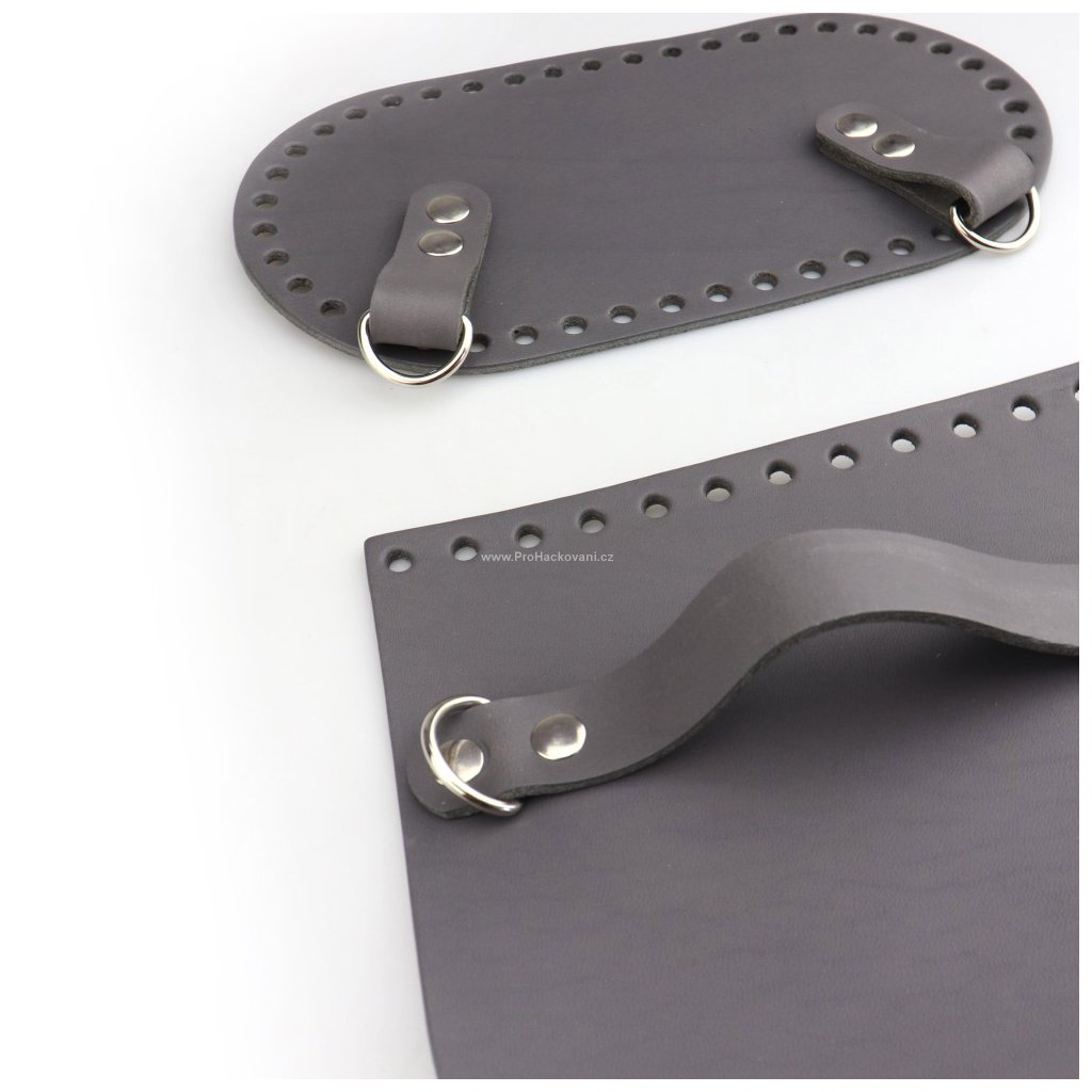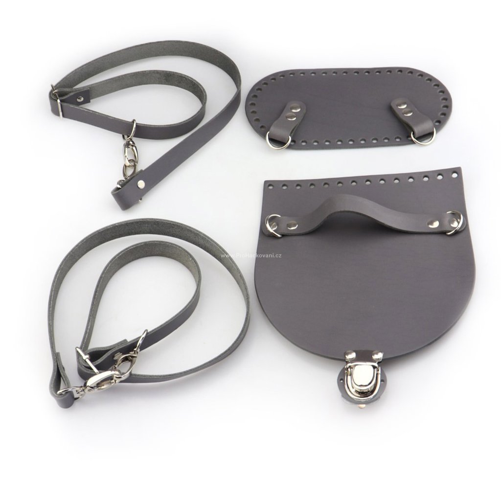 Kožená sada na batoh s klopou, dnem a popruhy - šedá