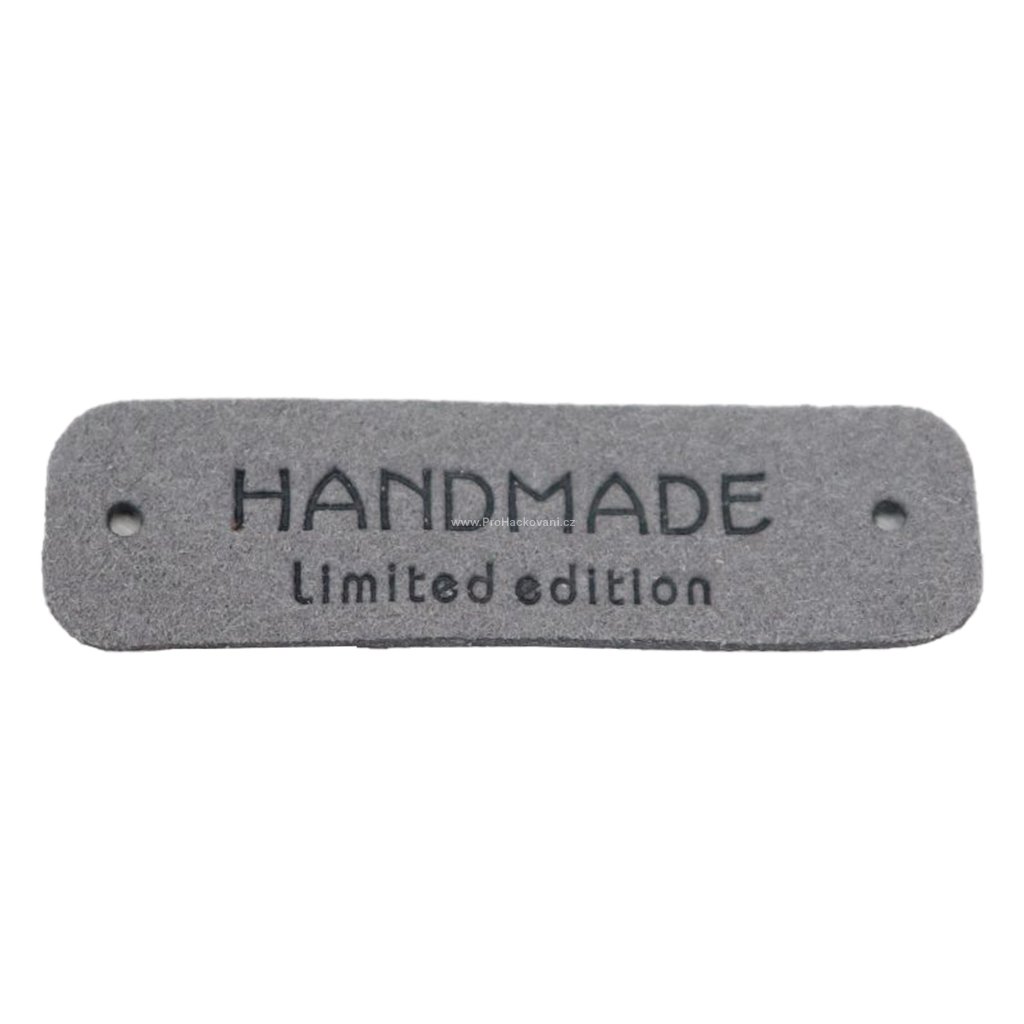 Hand Made štítek koženka, bílá barva,nápis limited edition.