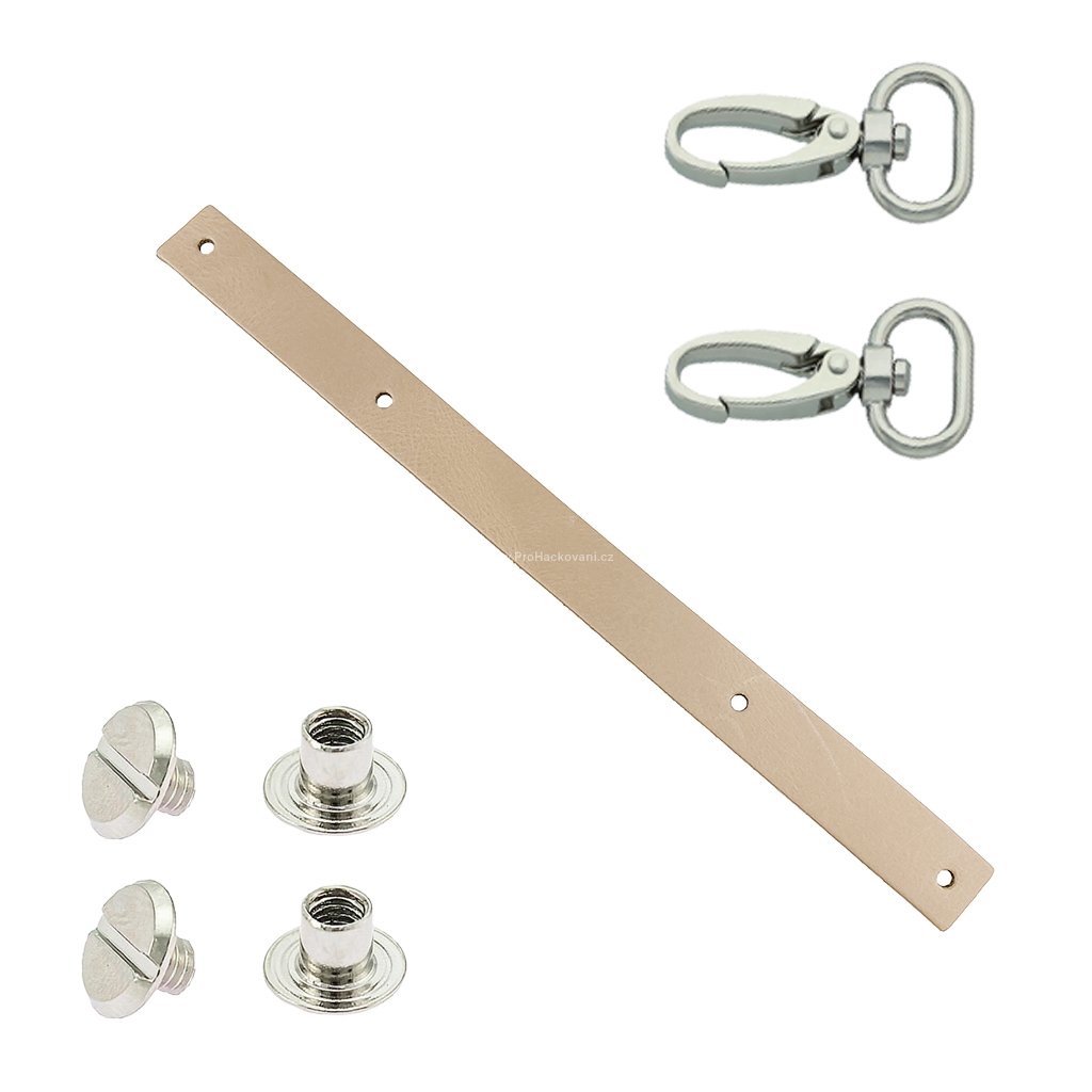 Sada kožený popruh 22 cm š. 2,5 cm krémový s karabinou nikl