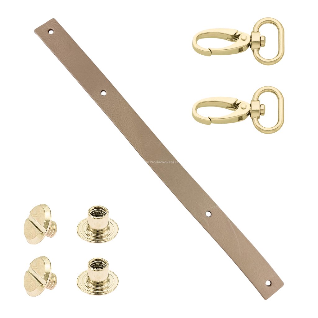 Sada kožený popruh 22 cm š. 2 cm bílá káva s karabinou zlatá
