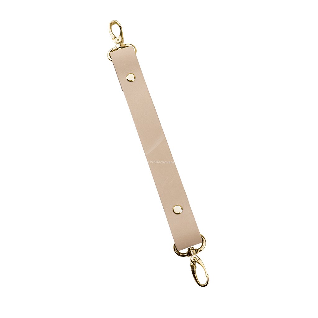 Sada kožený popruh 22 cm š. 2 cm krémový s karabinou zlatá