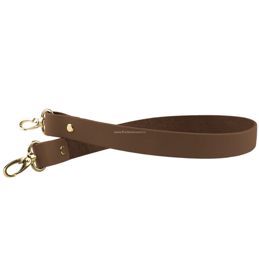 Sada kožený popruh 58 cm š. 2,5 cm tmavě hnědý s karabinou zlatá