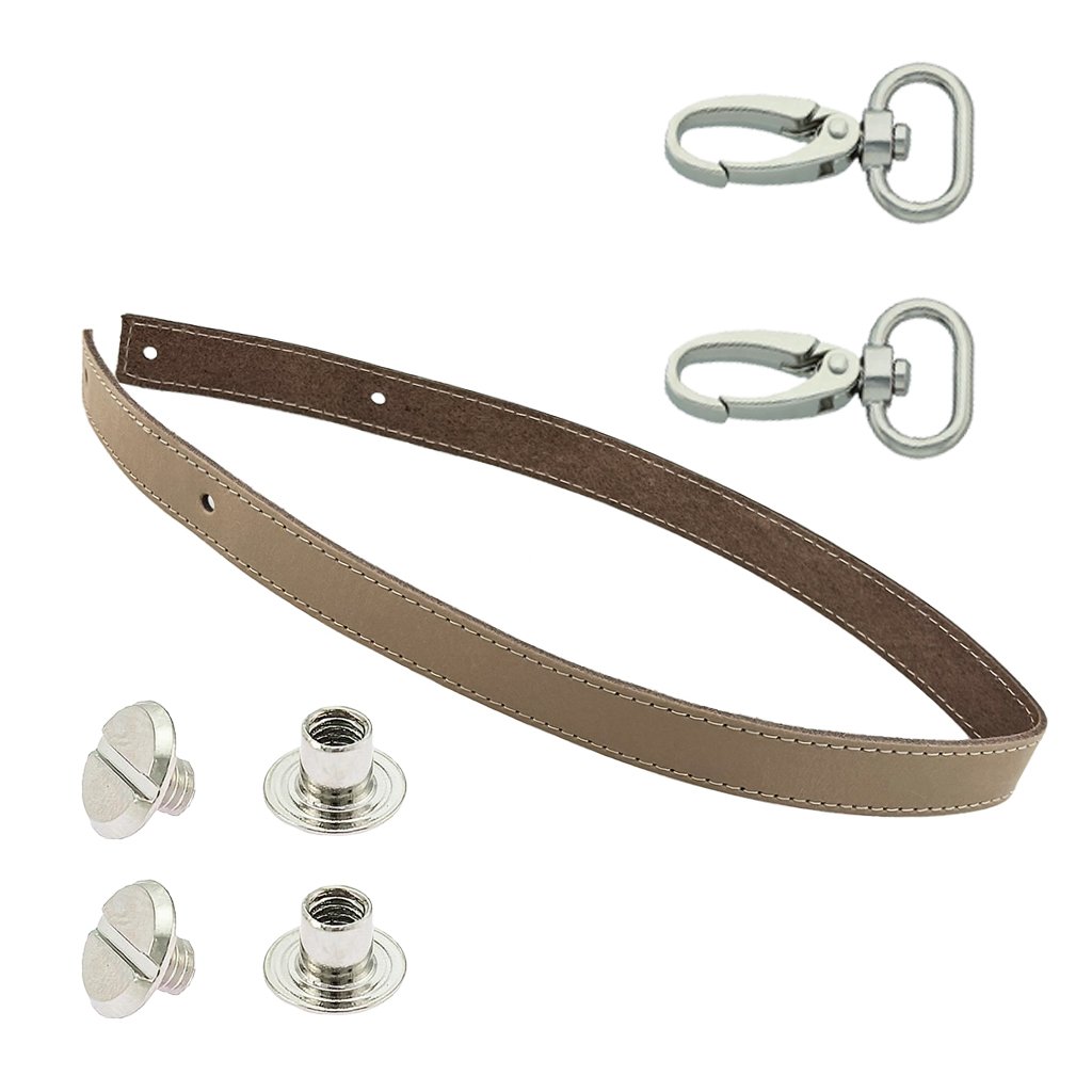 Sada kožený popruh prošívaný 62 cm š. 2 cm bílá káva s karabinou nikl