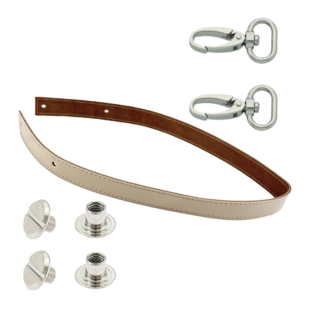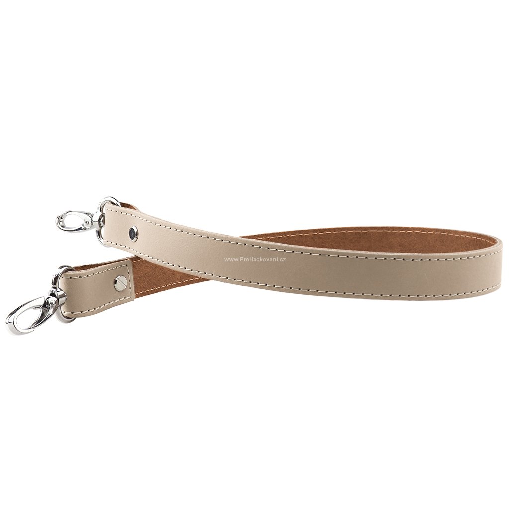 Sada kožený popruh prošívaný 62 cm š. 2 cm krémový s karabinou nikl