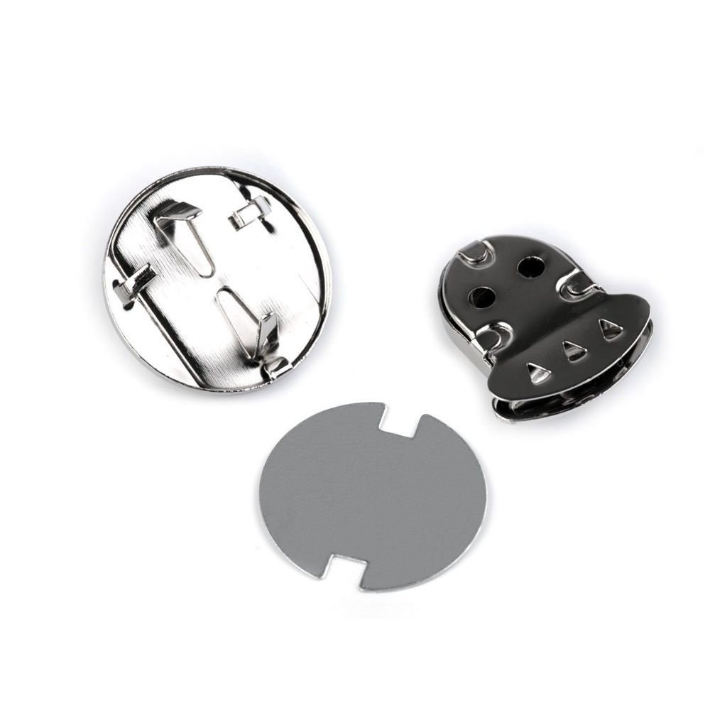 Sada zapínání na kabelku či tašku se skládá ze tří dílů. Jeden díl se připevní na vnitřní část tašky, druhý