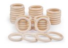 Pomůcky pro macramé – dřevěné a kovové kruhy, tyče, korálky a hřebeny pro snadné tvoření a dokončování projektů.