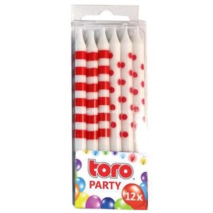 Svíčky s jemnými motivy puntíků a proužků jsou ideální na narozeninový dort pro malé i velké oslavence.
